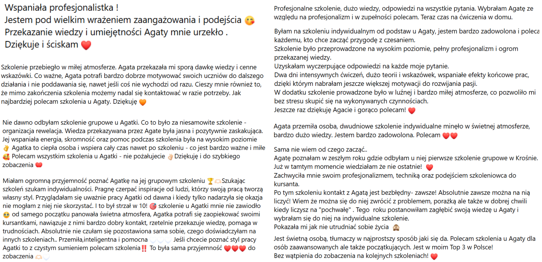 Moje umiejętności rozwijałam u najlepszych trenerów w Polsce oraz za granicą. Miałam okazję szkolić się w Wielkiej Brytanii, Holandii i Portugalii pod okiem najbardziej cenionych szkoleniowców na świecie.